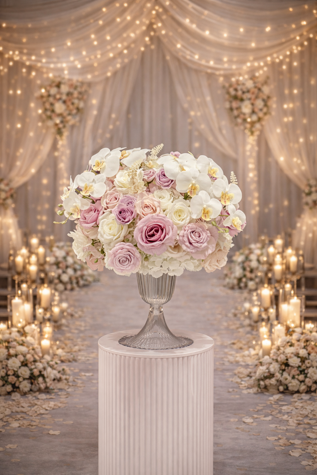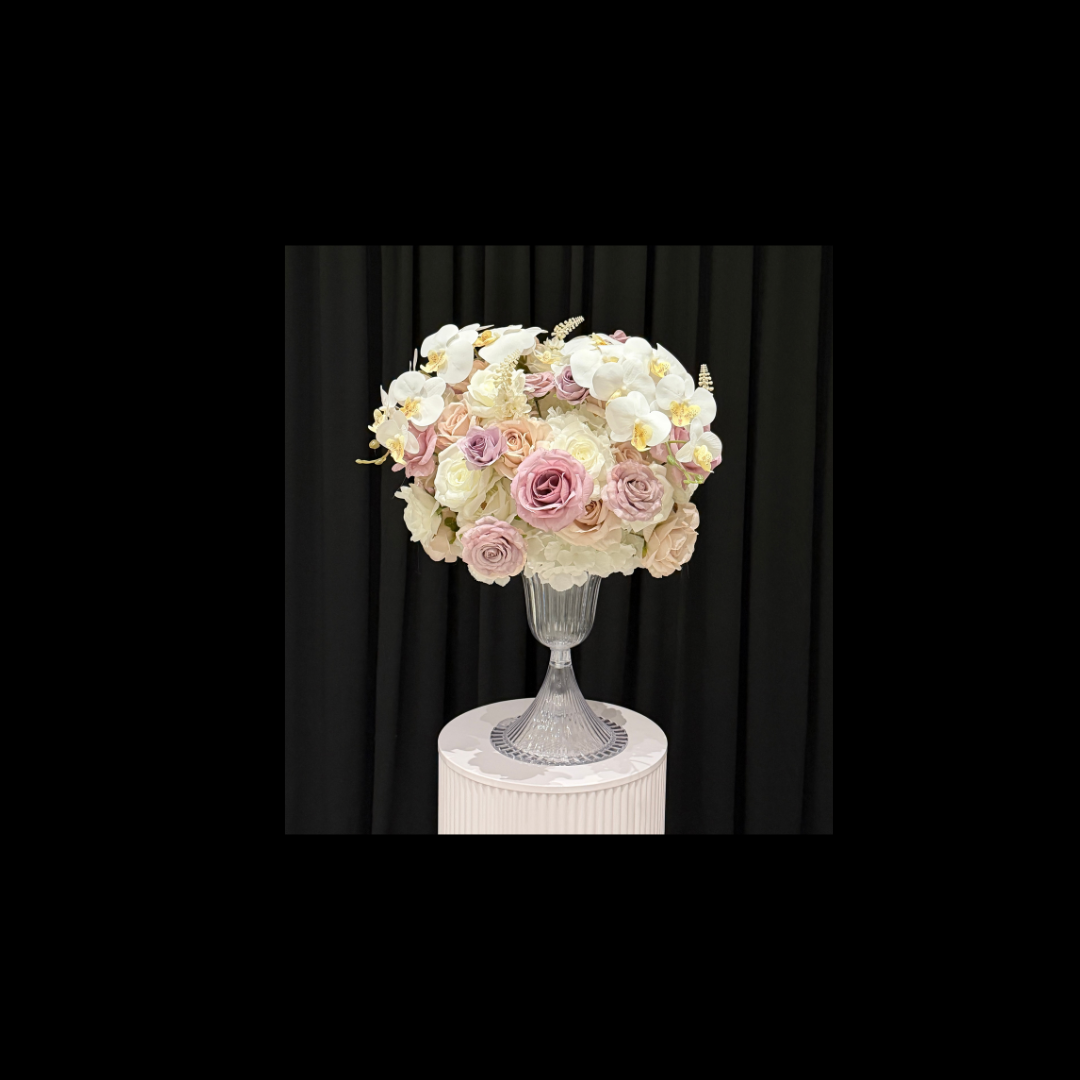 Cette boule de fleurs de haute qualité, fixée et piquée dans une mousse, peut être posée sur un vase ou tout autre support. Elle ajoutera une touche réaliste et élégante à vos décorations.